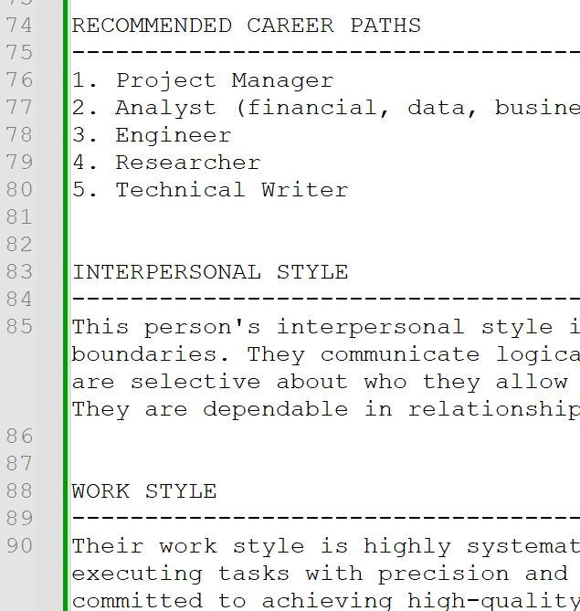 inkslate.pyin any text editor and uncomment the following line:create_comparison_report("analysis1_personality.json", "analysis2_personality.json"). - Replace the two file names with that of the two reports that you want to compare.